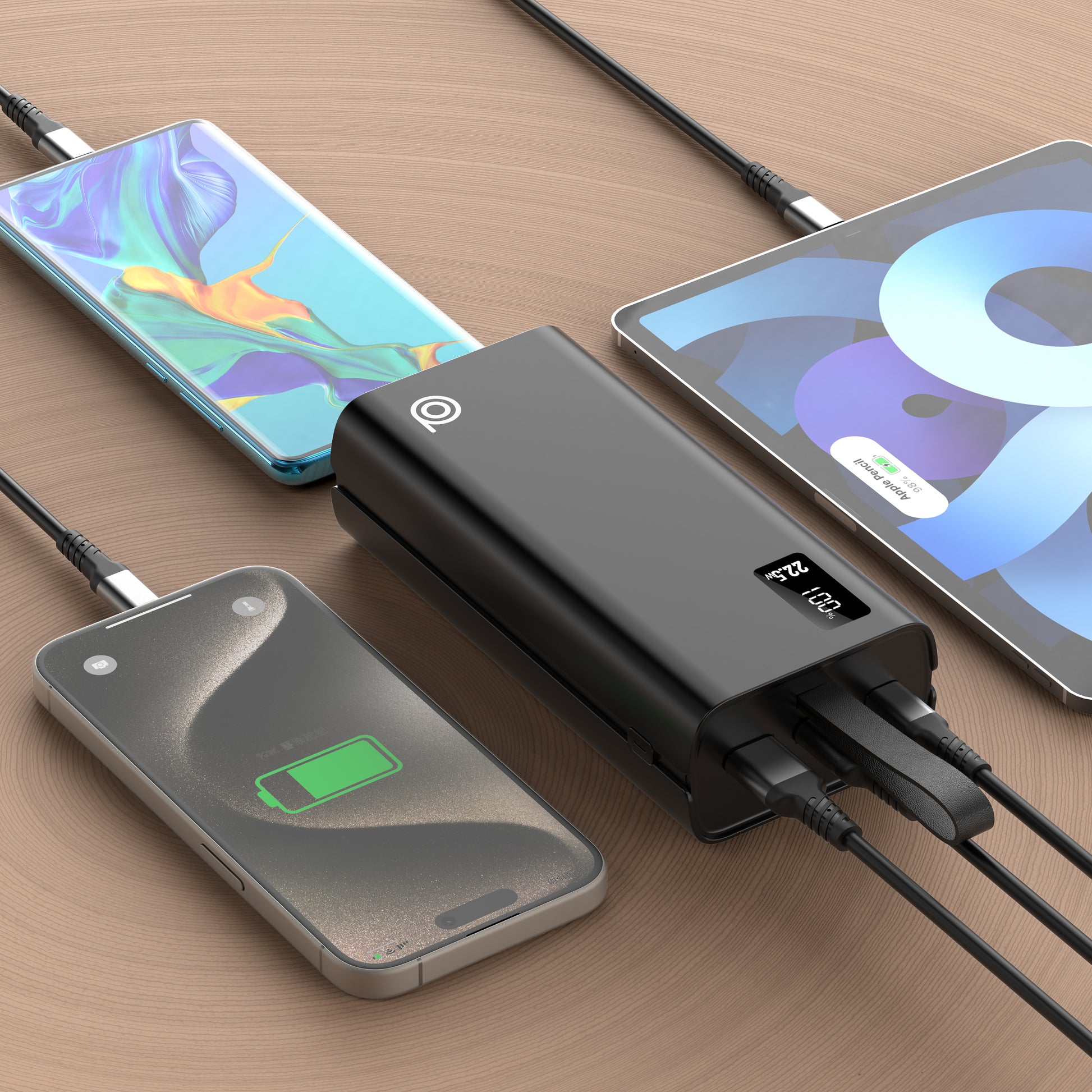 22.5W Fast Charging & Dual USB Ports: Equipped with dual USB ports (USB-C and USB-A) that deliver up to 22.5W of charging output, this powerbank rapidly refuels your smartphones, tablets, and other USB devices simultaneously.
